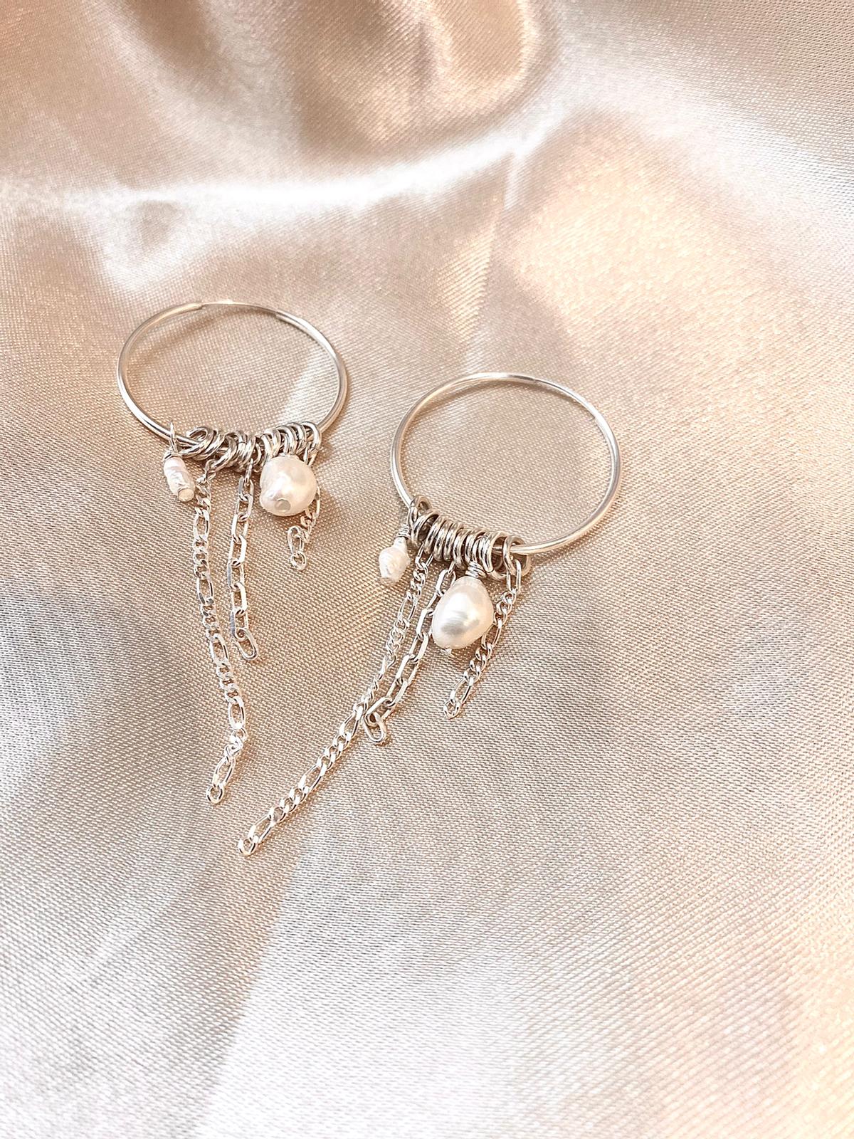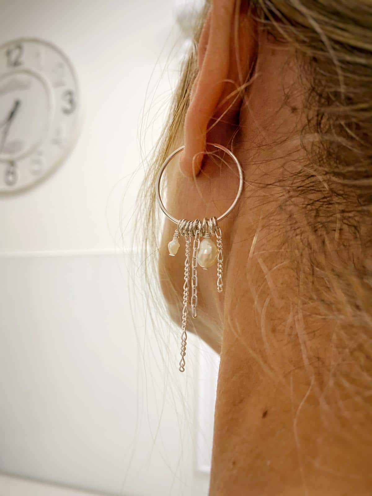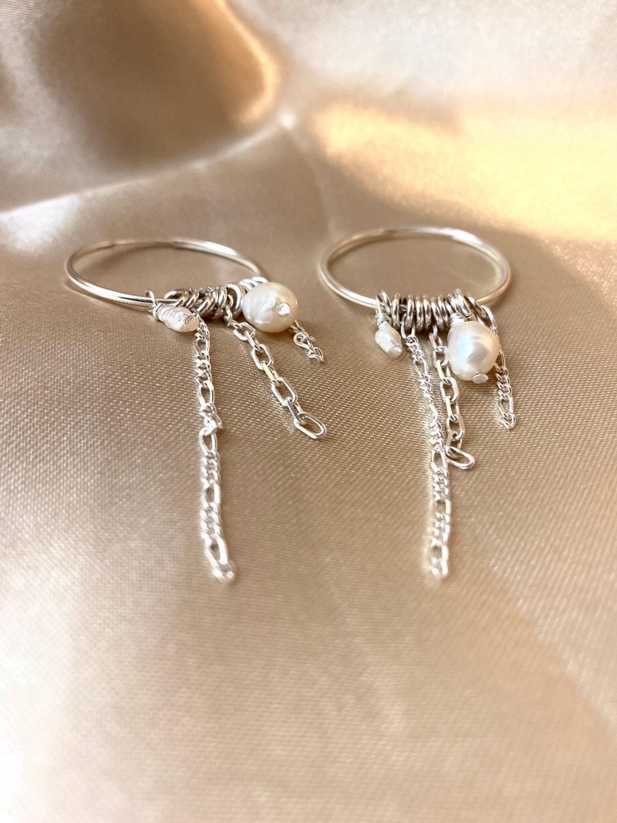 עגילי חישוק בשילוב פנינים טבעיות ושרשראות גורמט שמשוות להן סטייל הכי מיוחד שיש, עגילים שיקצרו מלא מחמאות
