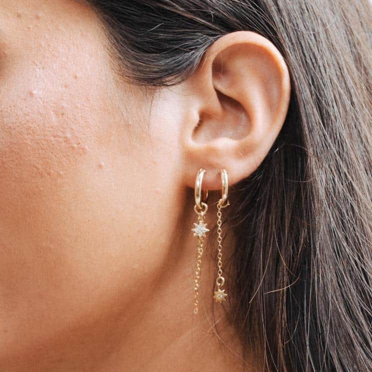 עגיל חישוק xs שמחובר לו תליון שרשרת באורך של 3.5 סמ עם תליון כוכב קטנטן בסוף